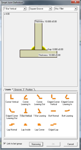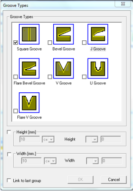 Select the Joint type, Groove type and